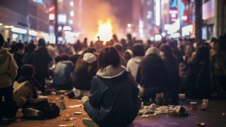 夜の都会で、キャンプファイヤをする女子 岩手県 盛岡市 ストリートスナップ